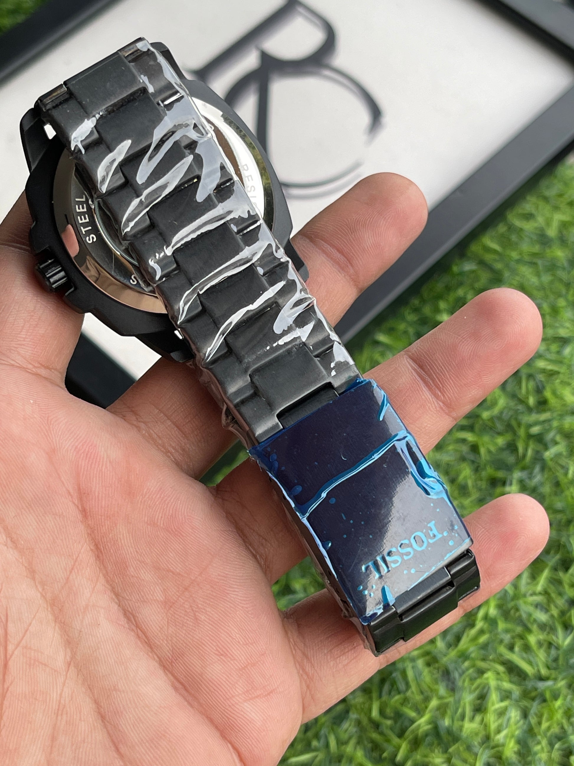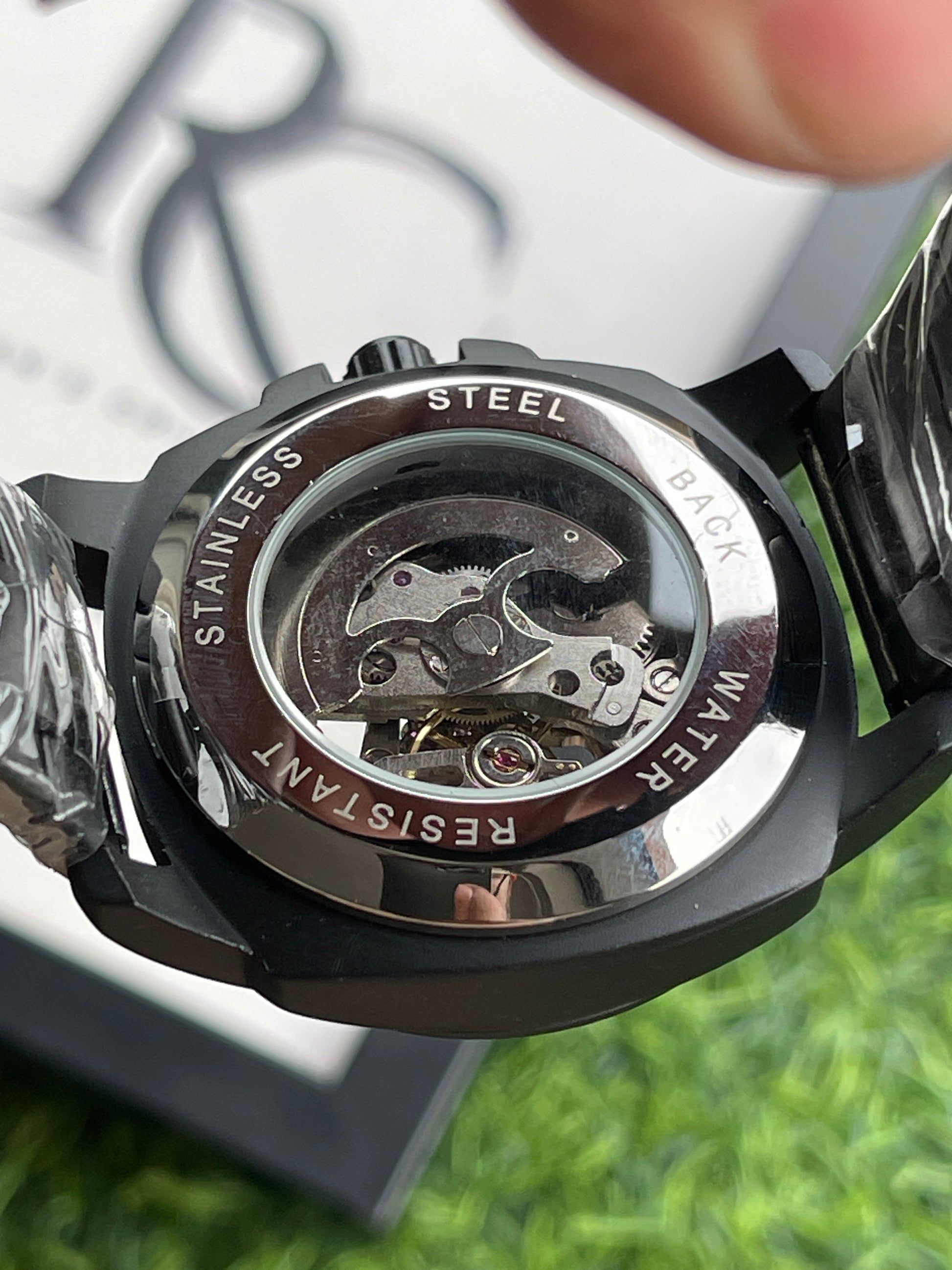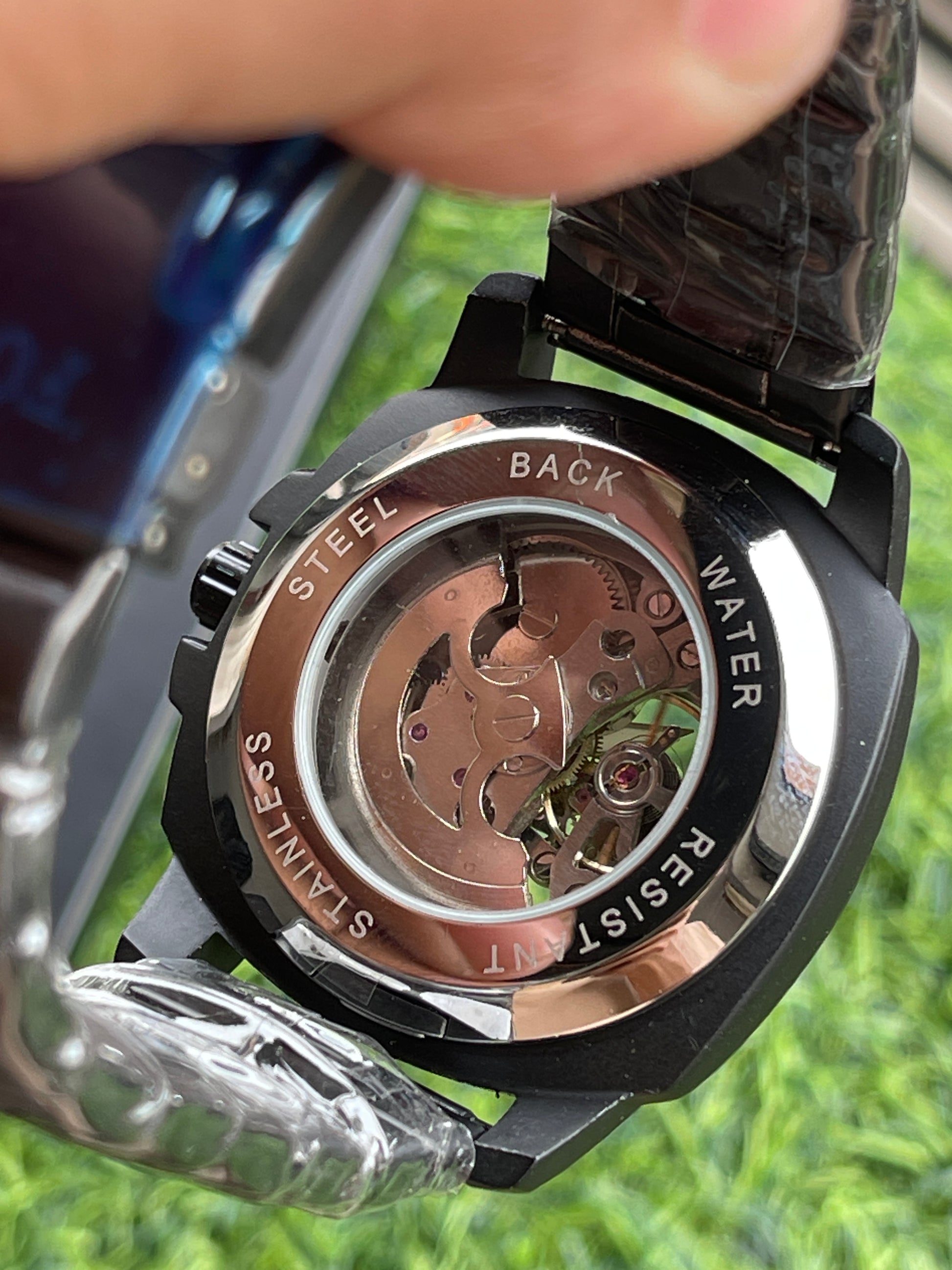 RC Fossiil Black Skeleton Automatic Watch with Black Metal Chain