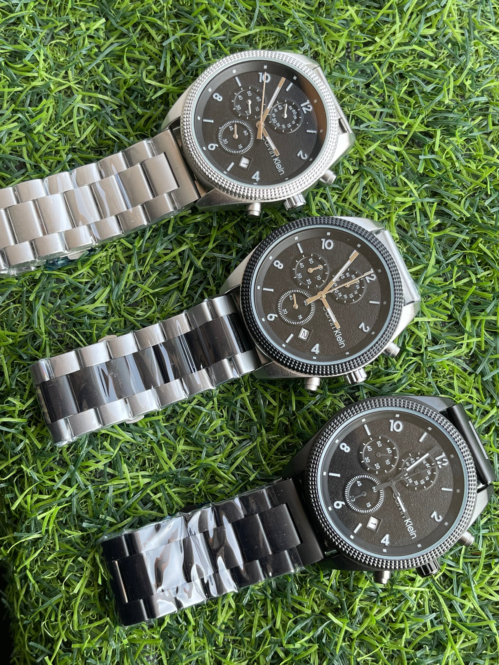 • Features: Chronograph sub-dials + date display