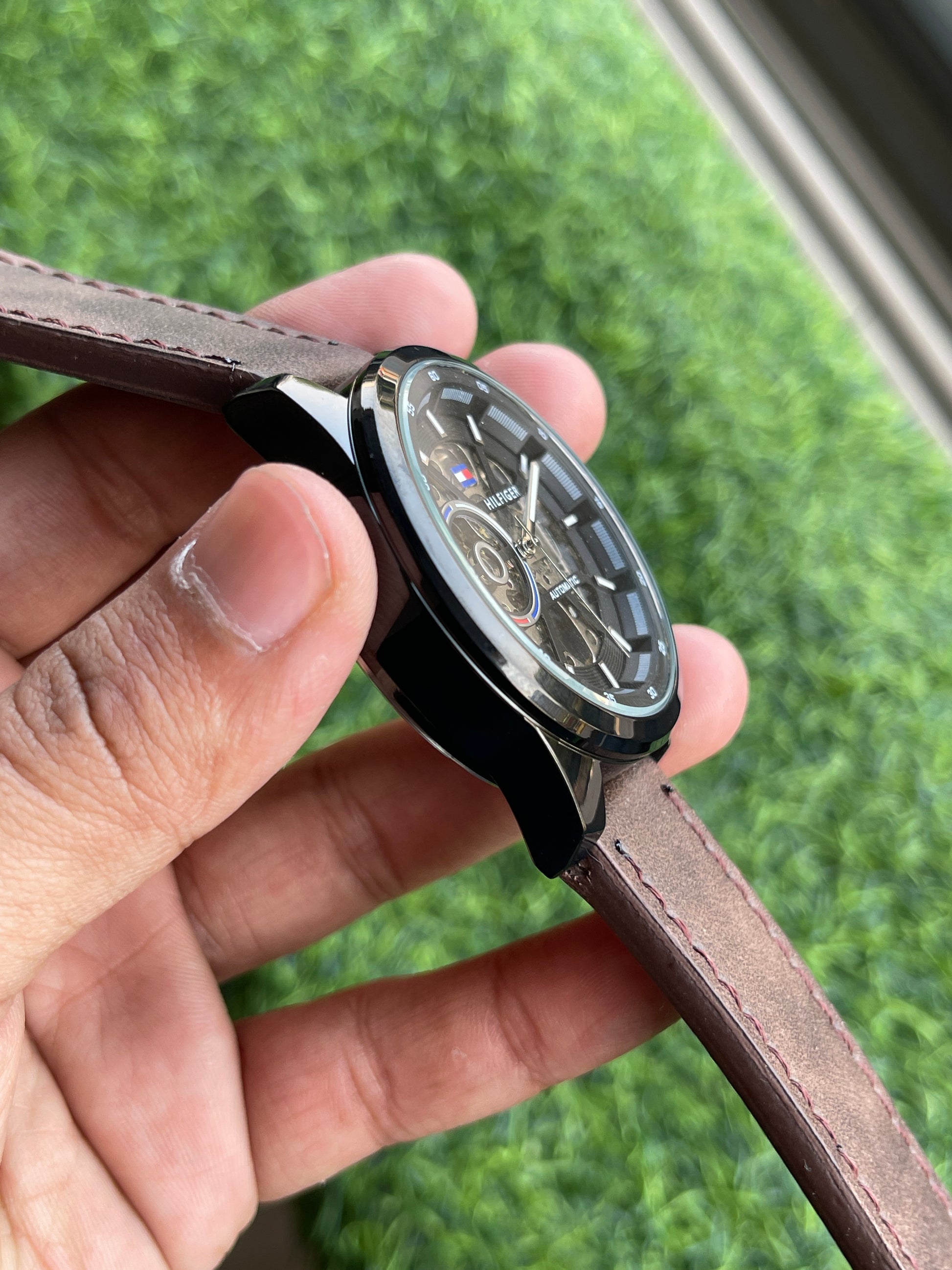 RC Tommy Automatic Skeleton Watch – Brown Leather Strap