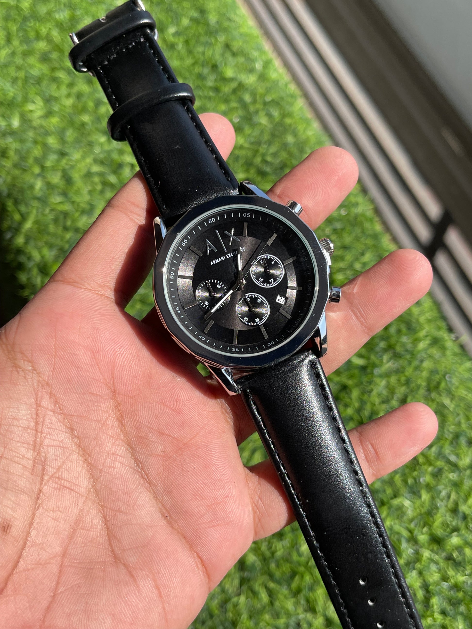 RC Armanii Exchange Black Dial Chronograph with Black Leather Strap