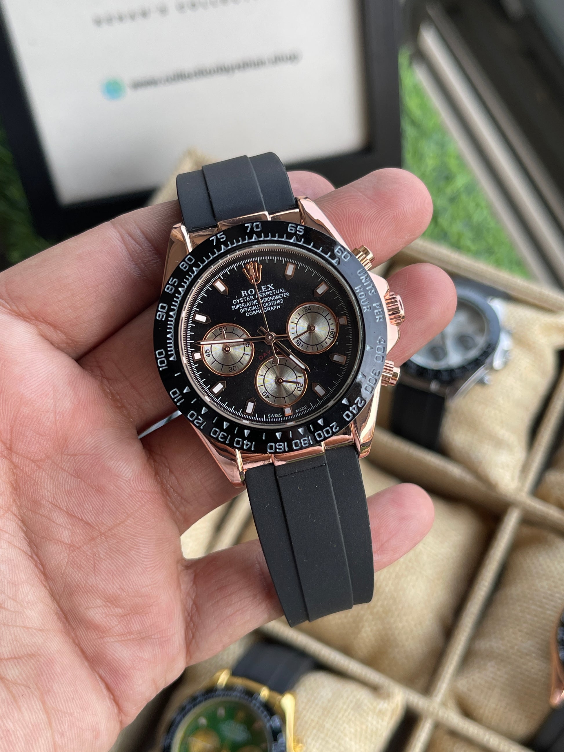 RC RLX Daytona – Rose Gold Case, Black Dial (Quartz Model)