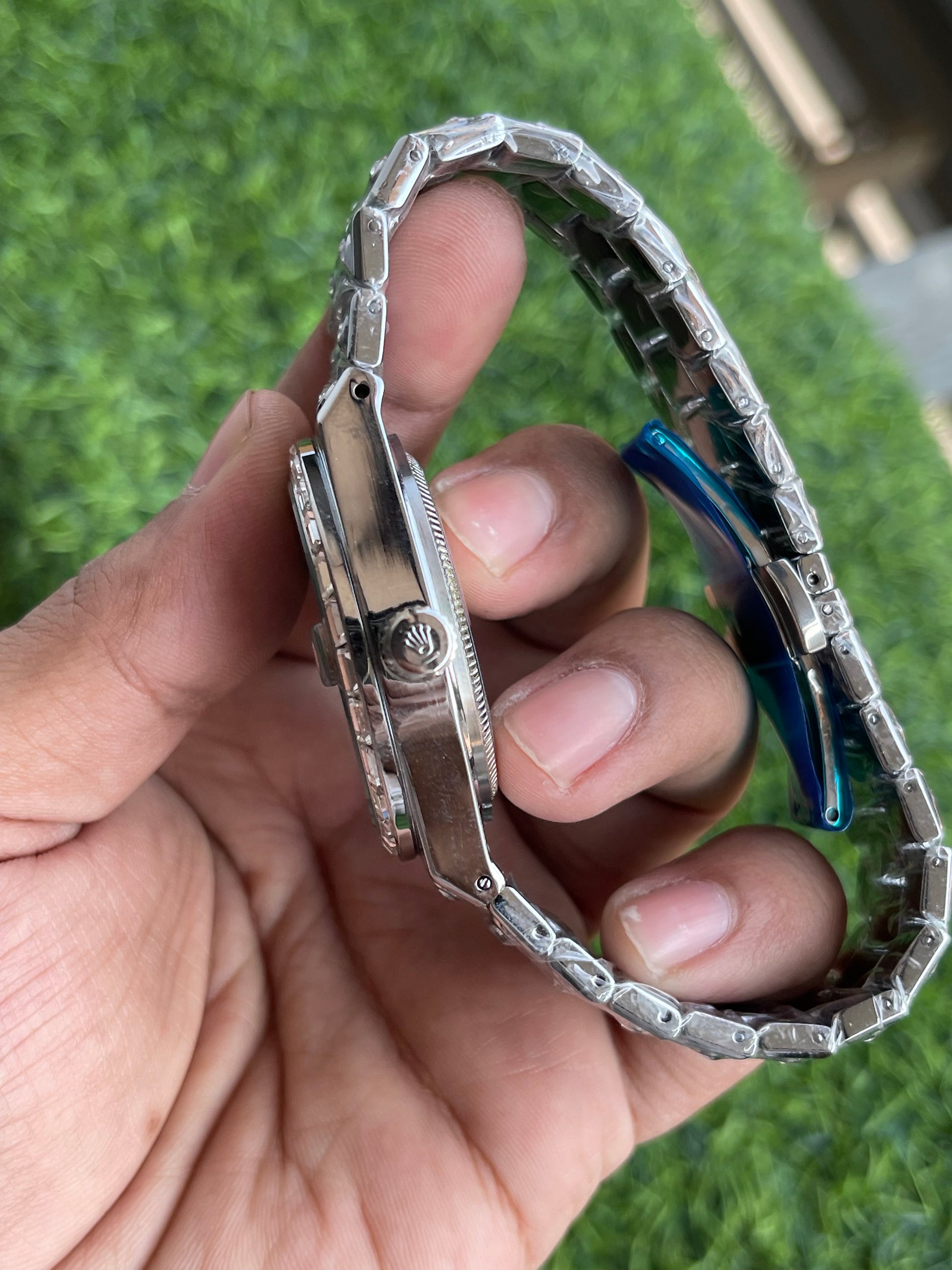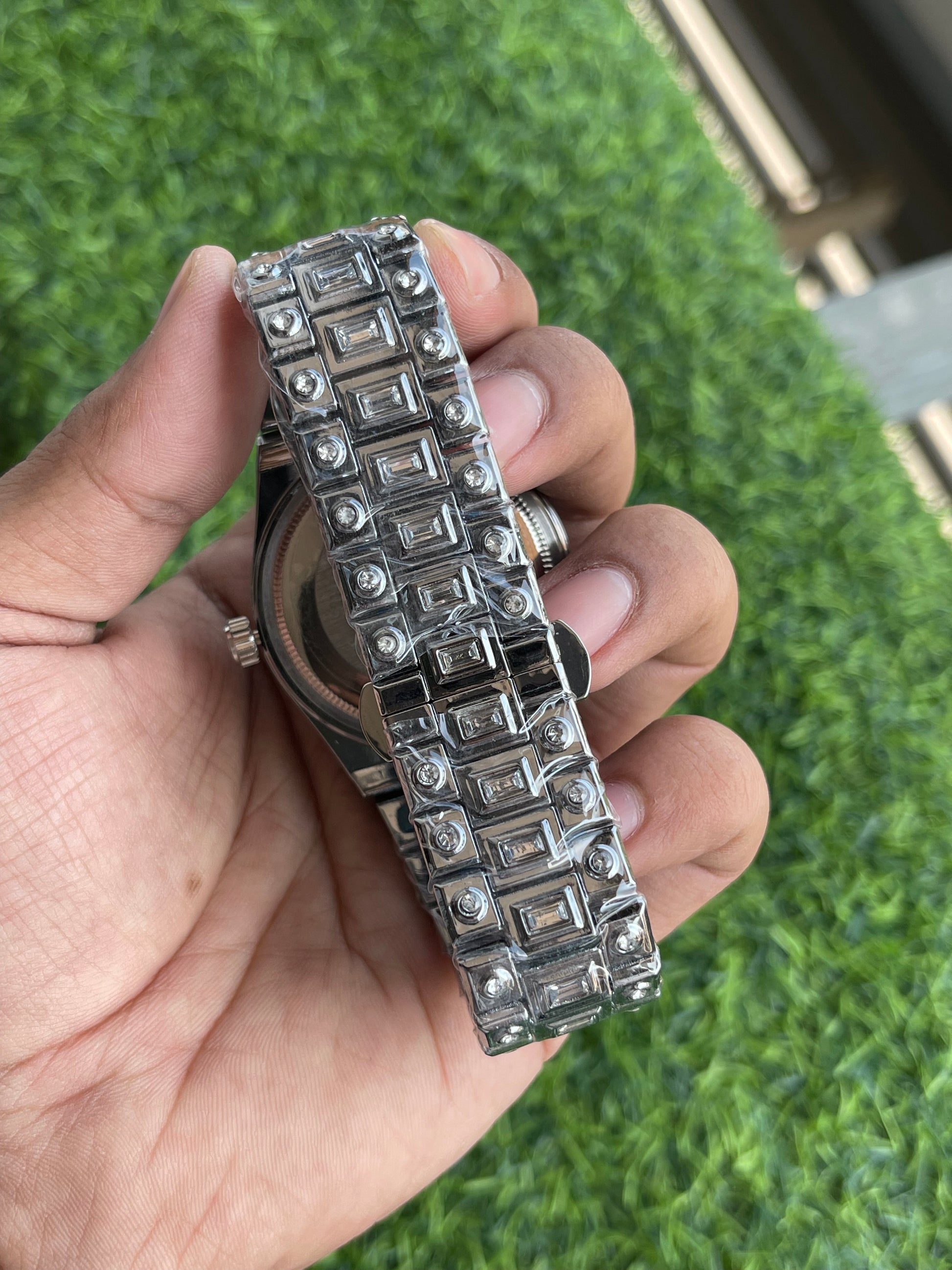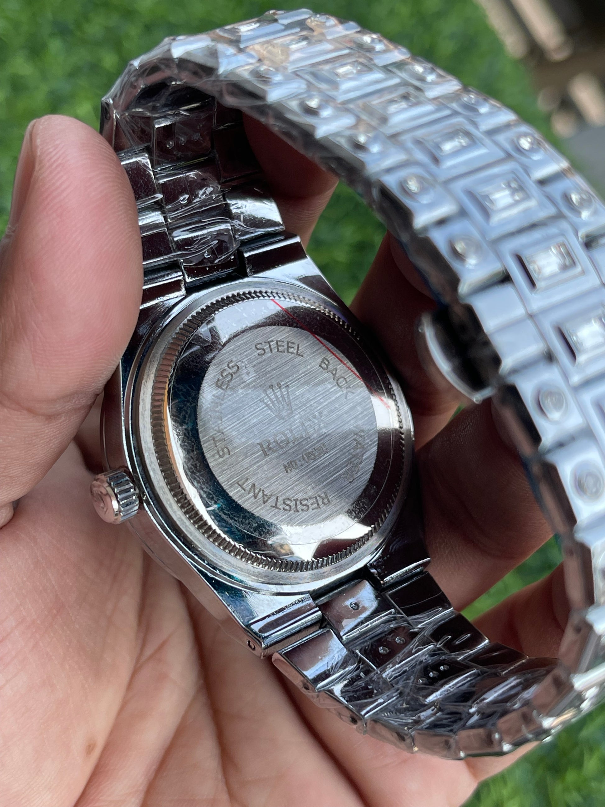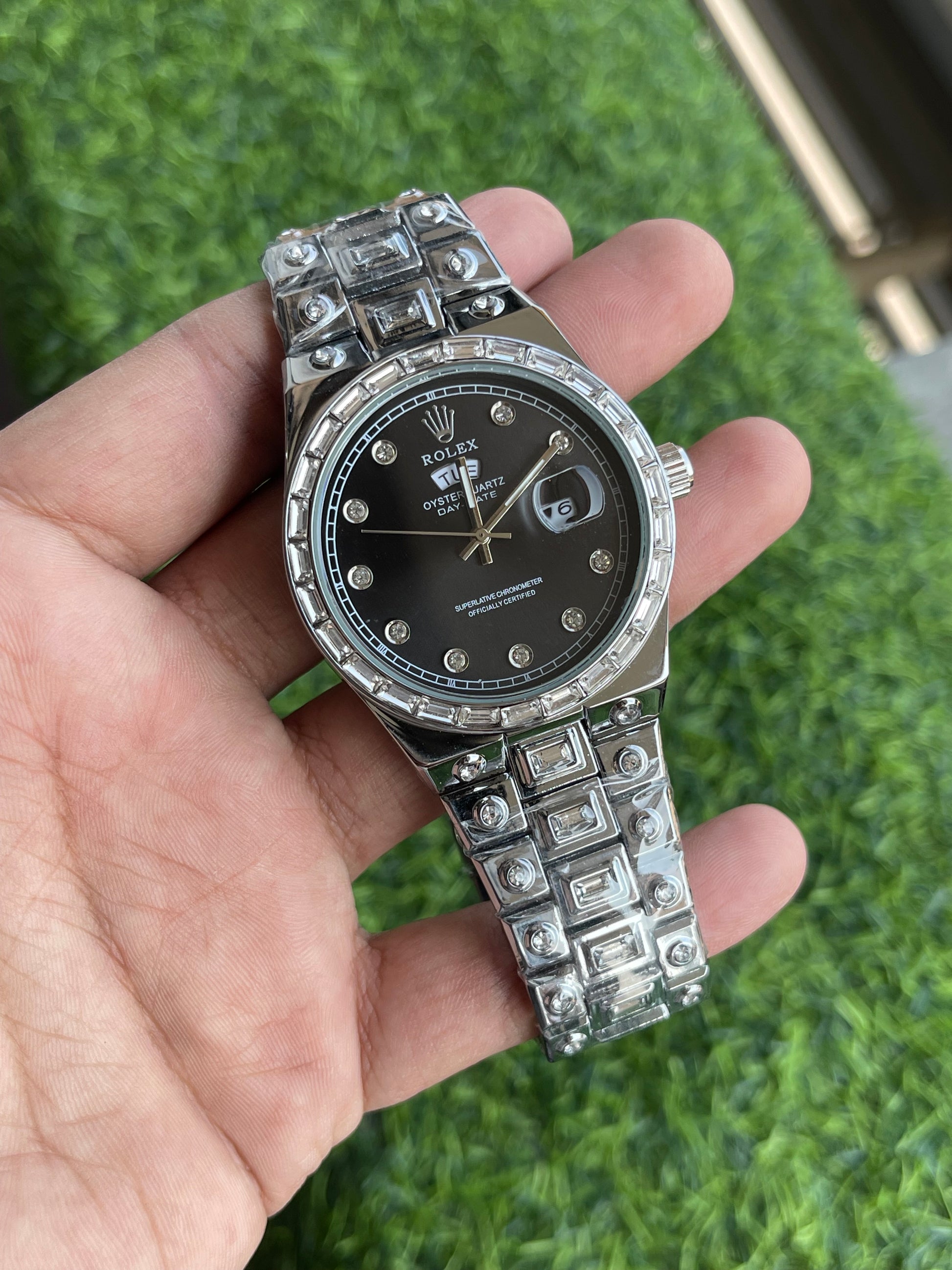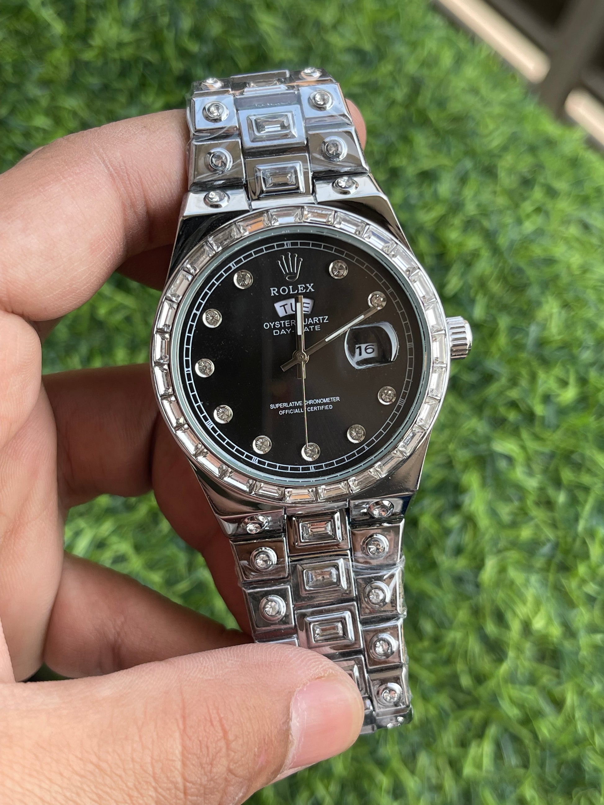 RC RLX Oyster Quartz Day-Date – Black Dial | Fully Diamond-Styled Edition