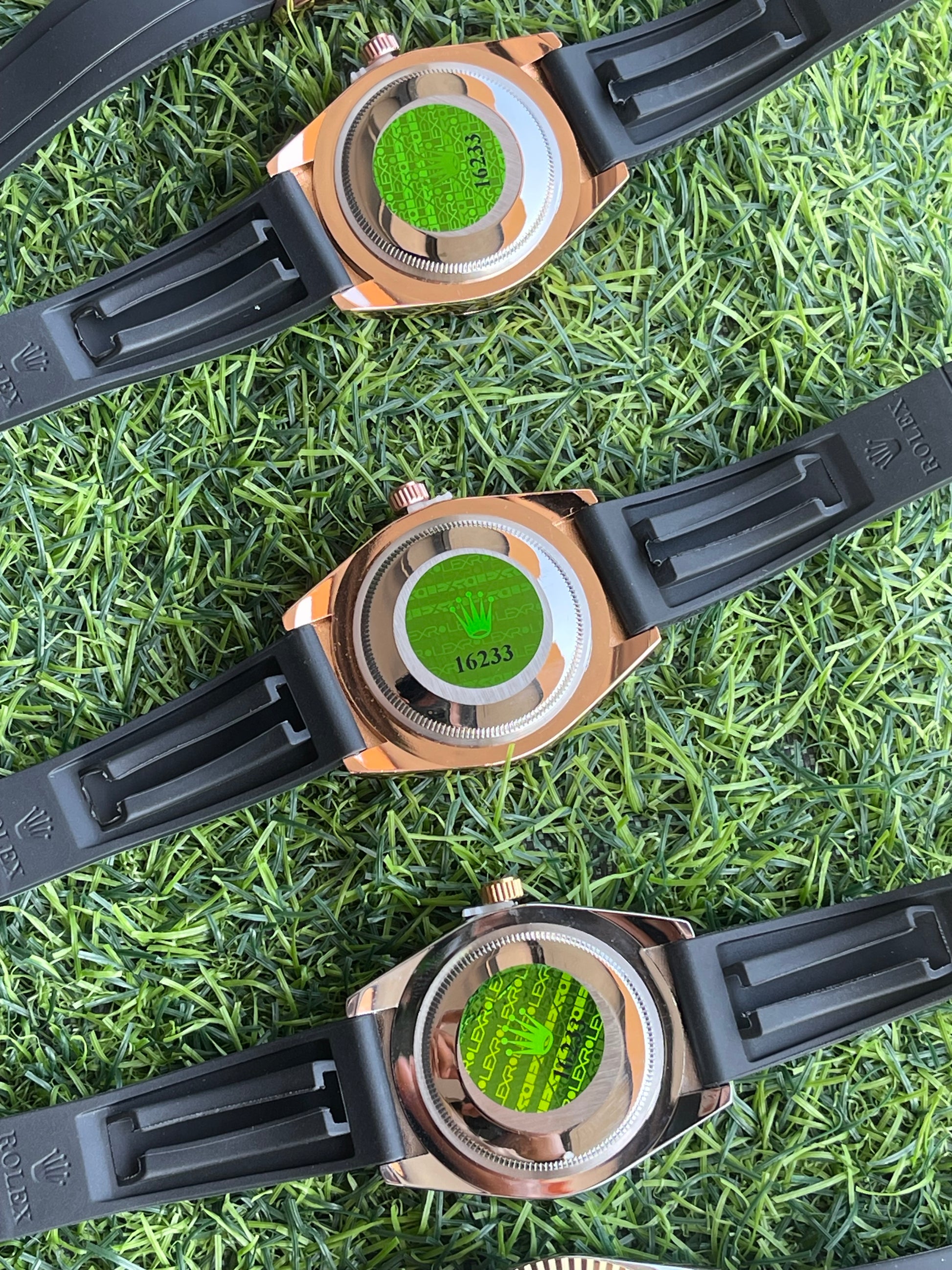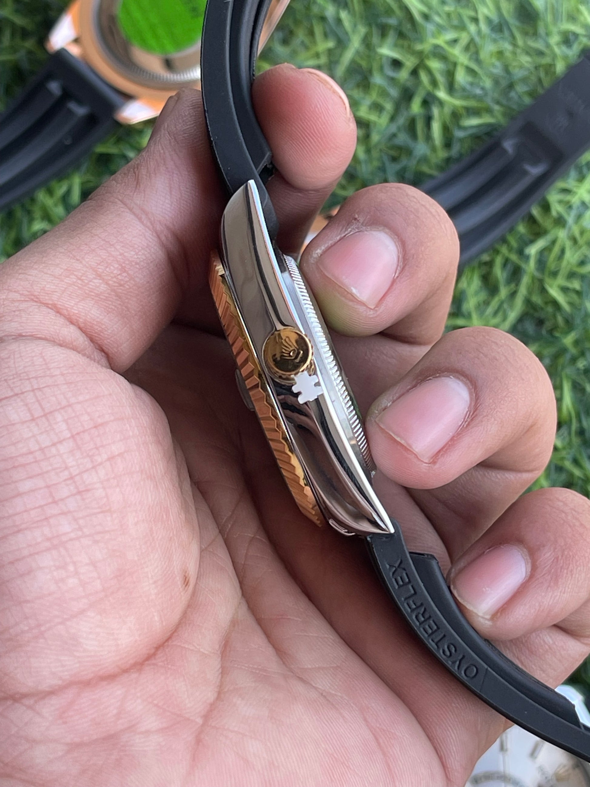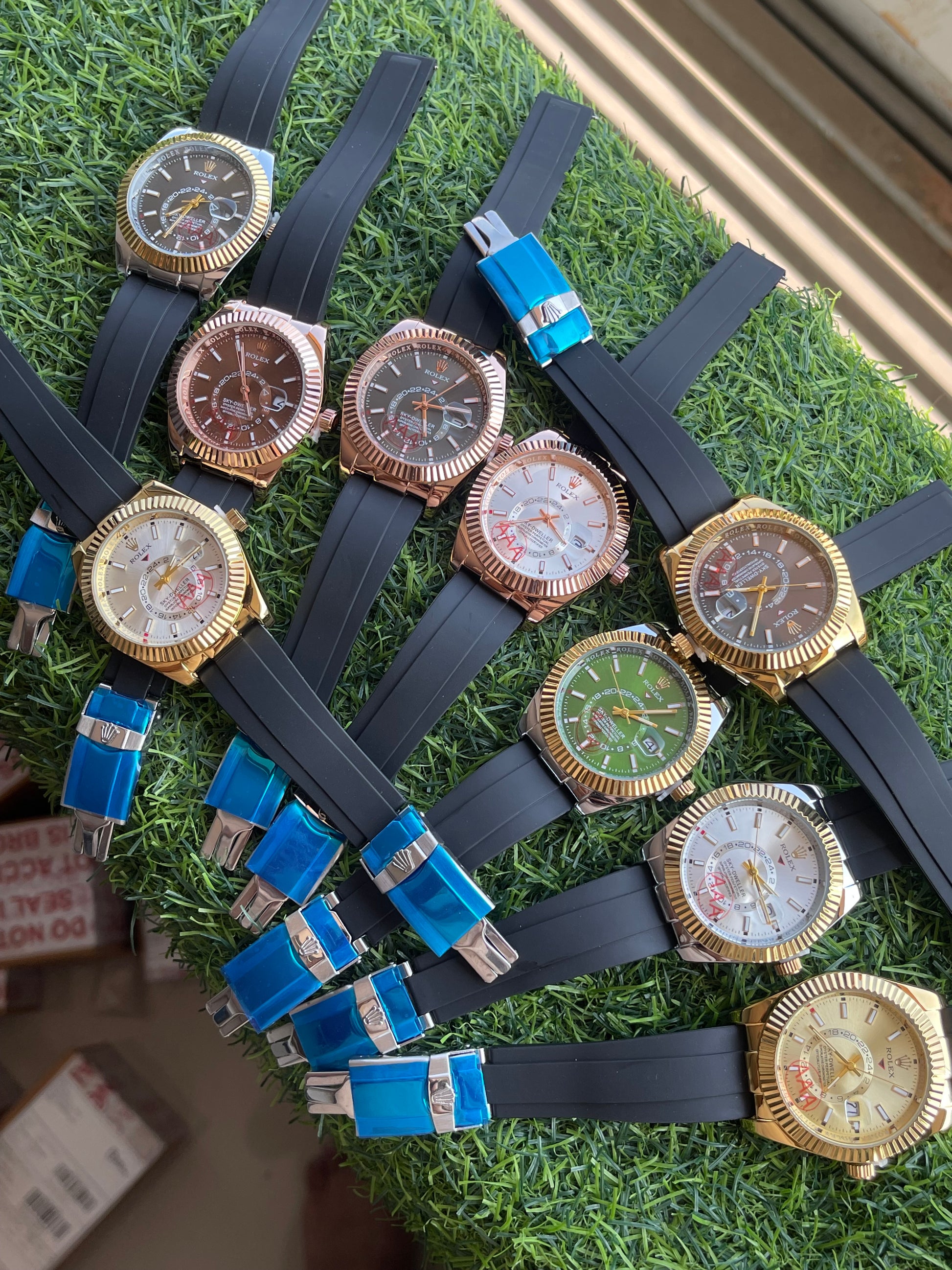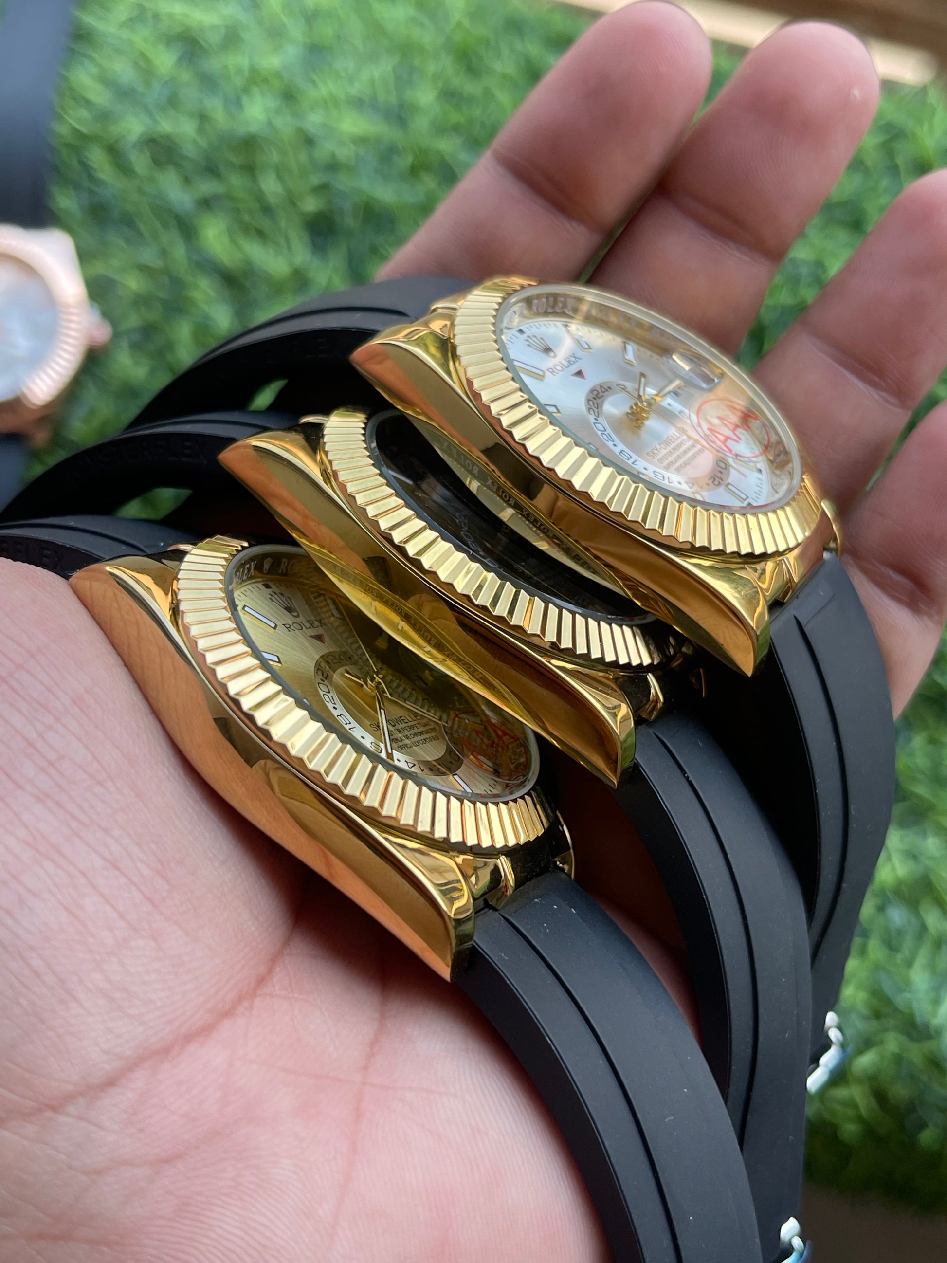 RC RLX Sky-Dweller Style Men’s Watch – Gold Case with Black Rubber Strap